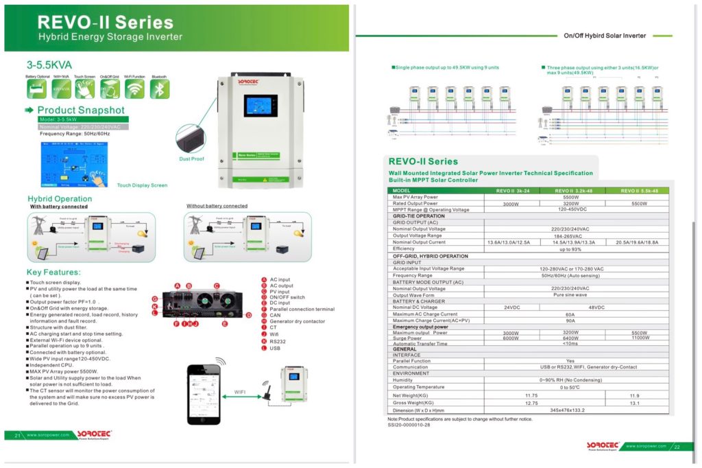 Thông số kỹ thuật của Hòa lưới Hybrid bám tải có lưu trữ SOROTEC REVO II 3 KW